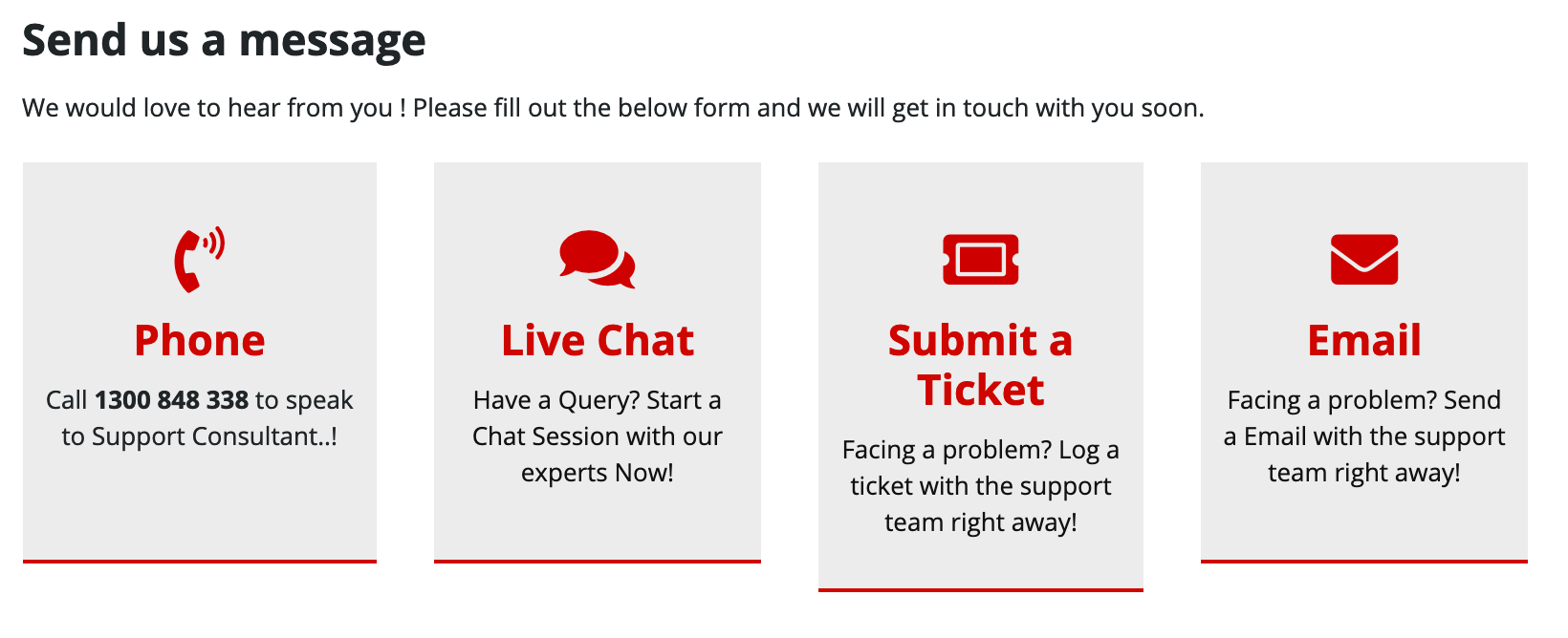 Note: In all the above scenarios a ticket will be created with us and our experienced support staff will connect with you as soon as possible to provide solution.