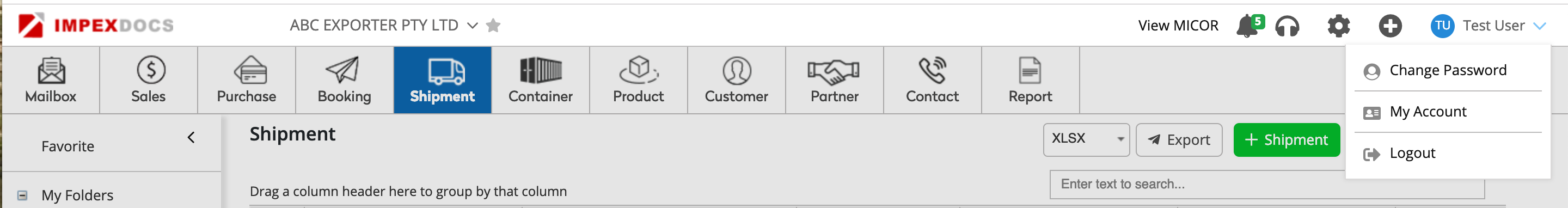 Step 1: Logon to your Impexdocs account. Click on your name on the top right corner