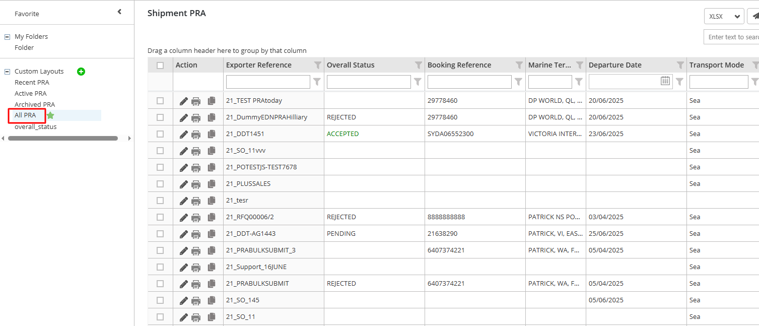 Go to Shipment and click on Pre-Receival Advice(PRA) to view list of PRAs