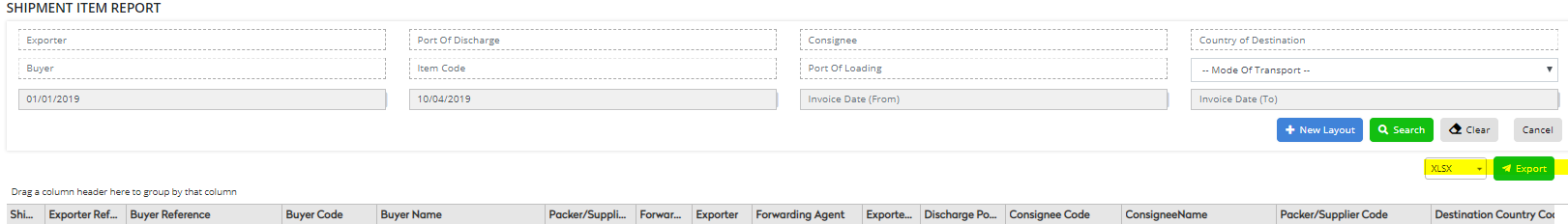 Add the filter you need and click in export. You can also hide column and create a layout of your report, so you don't have to filter every time. The user only have to click in +New Layout.