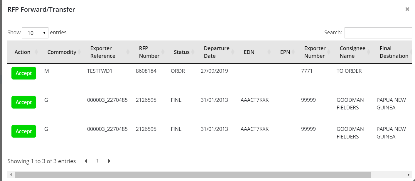 A new shipment will be created with the Shipment Number same as the RFP Exporter Reference