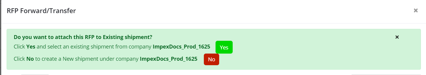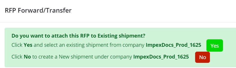 Select 'No' below, if you want to create a completely new shipment and assign the RFP to that new shipment.