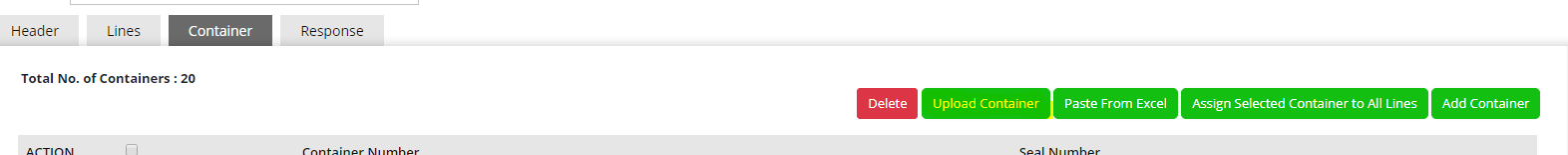 2. Copy and paste Container/seal number from Excel - Click on Paste from Excel on the Container Tab