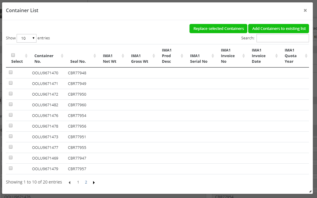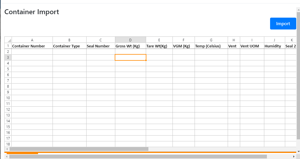 Copy and Paste Container/Seal numbers from Excel and paste on the below pop-up and then click on Import