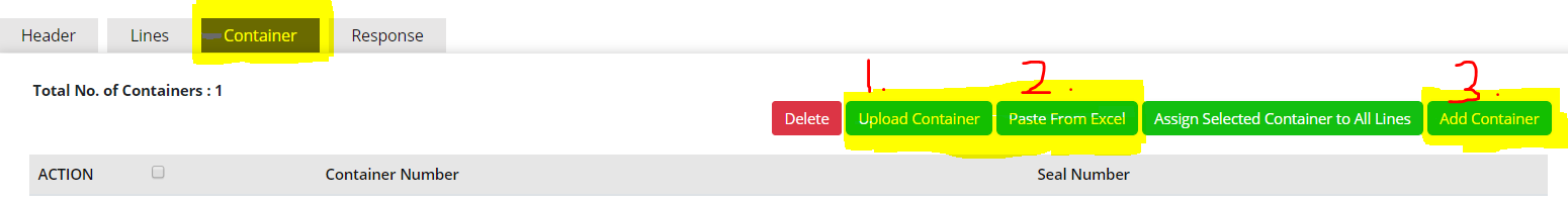 As highlighted below, Manually, you can Add container, Upload container or Paste from Excel.