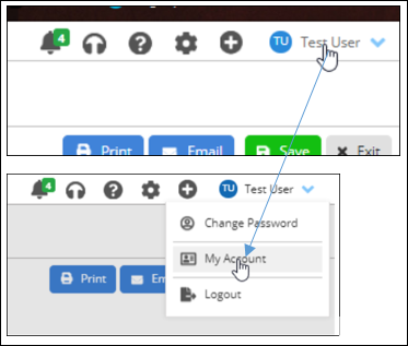 - First, click on the user dropdown and select “My Account”. This will take you to the user’s account settings.