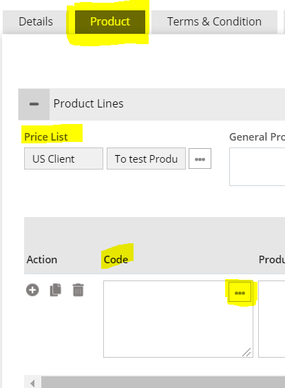 Price List will be available at Sales, Purchase and Shipment Level under Product Tab. The product selected for this Price list will be available to add on Line item by clicking on Look-up in the Product Code field.