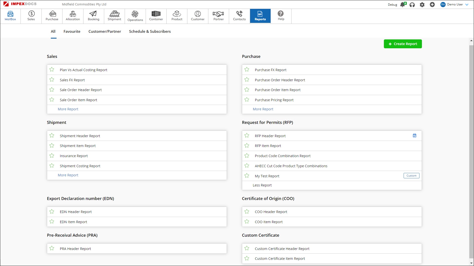 - In the All tab, click on any standard report under a specific category such as Sales, Purchase, Shipment, etc.