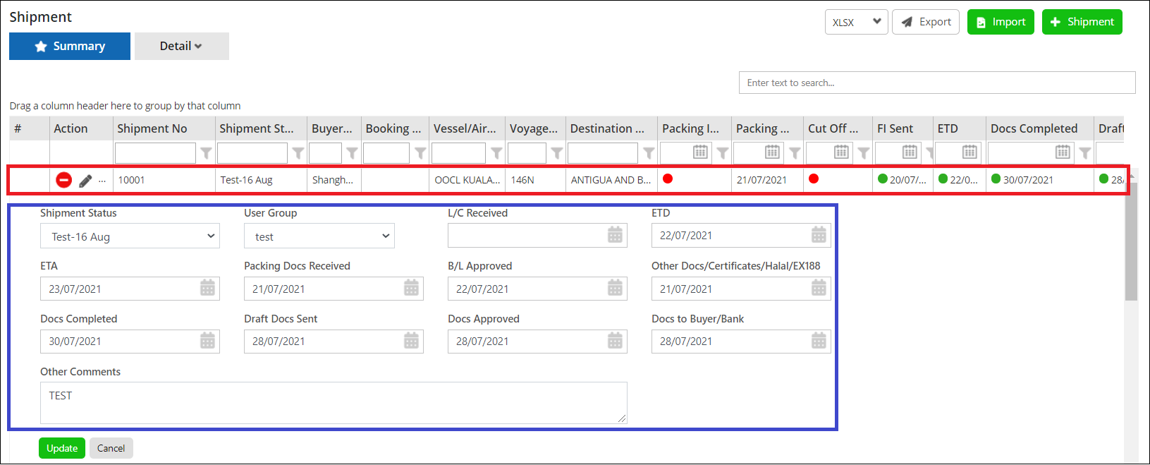 Click the Edit button in case you need to open the complete shipment order in editable mode. - Click the Update button.
