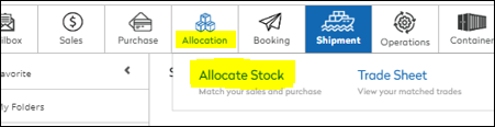 Take your cursor on the “ALLOCATION” tab on the top, this gives you a hover for “Allocate stock” & “Trade Sheet”.