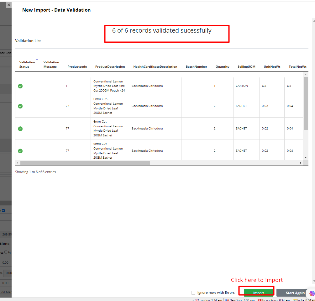 Step 8: Once you see, Records validated successfully, click on Import button.